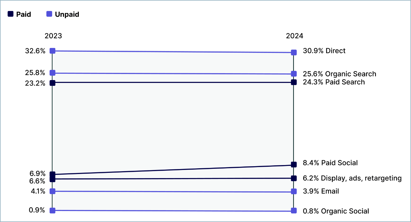 Through 2024 and 2025 the growing importance of Generative AI and increase in Zero-clicks caused by Google's AIO Overviews have caused many to question the importance of SEO, but the ongoing value of organic search is suggested by this recent research showing that organic search is the top media channel for large businesses and still accounts for over one quarter of all website visits. Of course, if you get it right, it can be higher still, for example, for Smart Insights it accounts for around 60% of all of our sessions.